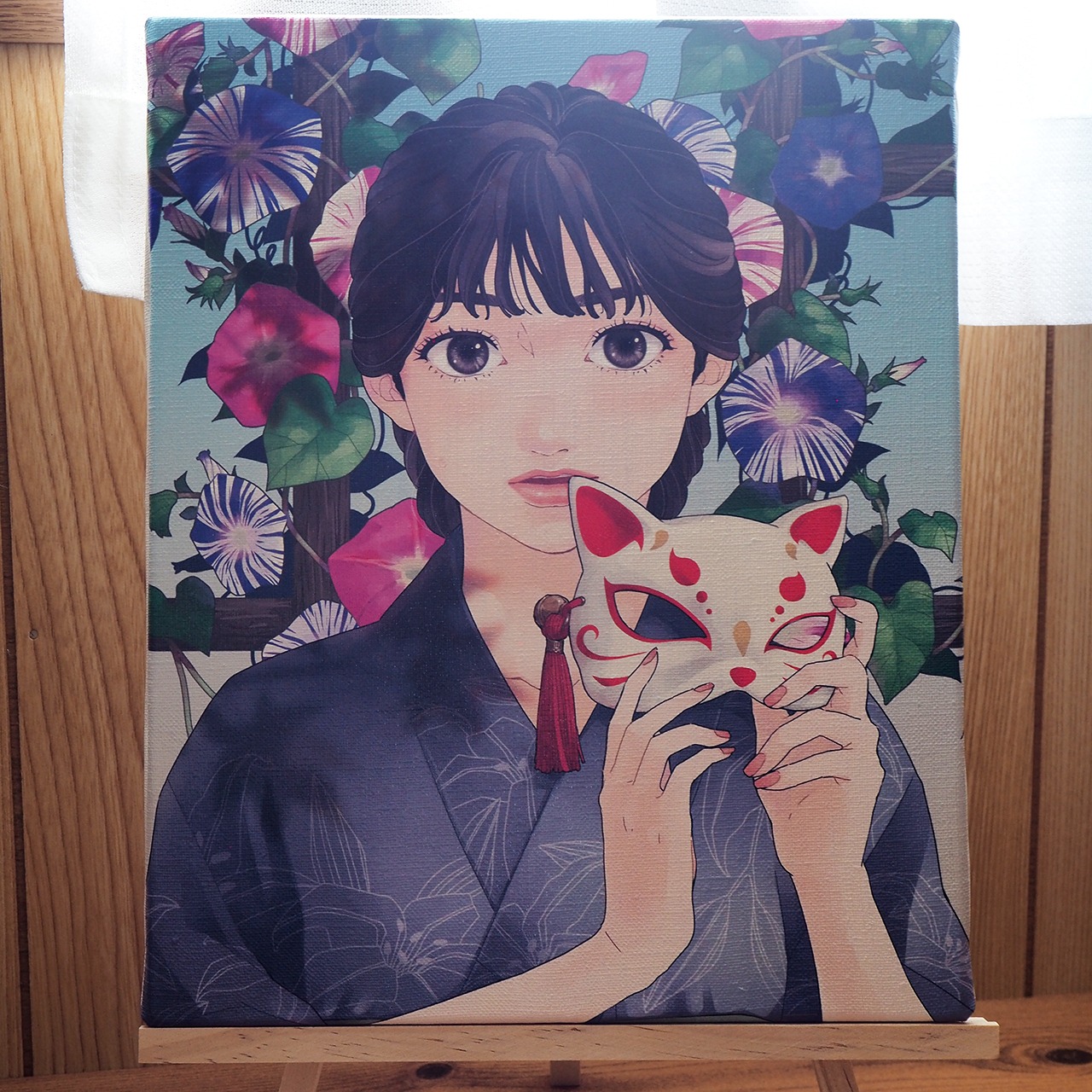 浴衣を着用した女性を、涼しげな色使いで仕上げました。
